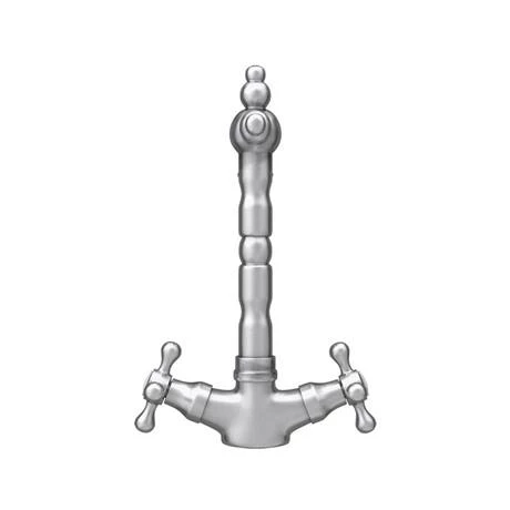 The stunning Britannia traditional style mono kitchen mixer. Smart and classic styling will make the this tap a centrepiece in your kitchen. Features a quality brushed nickel finish with white indices. Suitable for all plumbing systems.