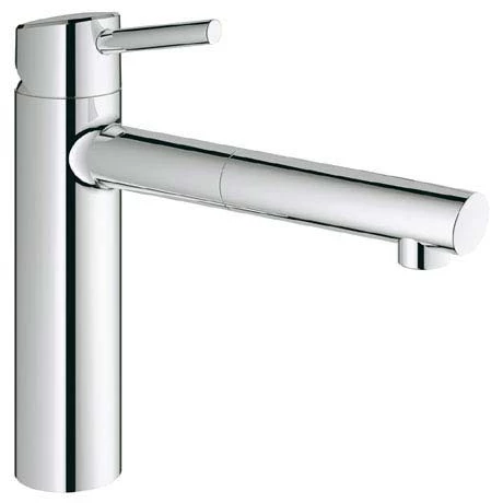 The Concetto kitchen sink mixer is an elegant and functional kitchen tap with a minimalistic design. It comes with a medium high spout that swivels in a 100° range for easy handling. The tap also has a handy pull-down spray head, which is ideal for cleaning the basin or rinsing pots and pans. The tap has a lustrous and durable chrome finish while the GROHE SilkMove® technology allows you to smoothly and accurately set the water volume and temperature. Grohe kitchen taps come with a 5 year guarantee.