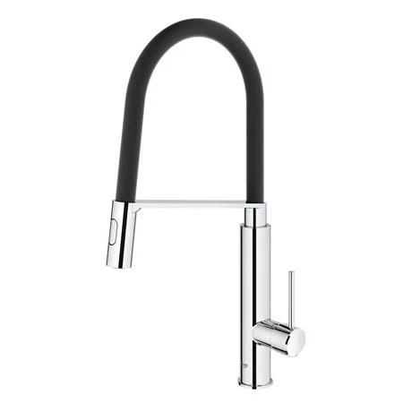 The Concetto kitchen sink mixer is a stylish tap with a high swivel spout and features GROHE SilkMove technology for smooth handling of water flow and temperature. The professional spray features two spray options – a normal spray and a powerful jet spray, ideal for cleaning veg, filling pots and even switching across a double sink. With the GROHE EasyDock M system, the spray head is easily guided back into place by a powerful magnet when you’re done. This stylish tap is manufactured using high grade materials and is finished with GROHE StarLight, a special chrome coating that is scratch resistant and easy to clean. All Grohe kitchen taps come with a 5 year guarantee.