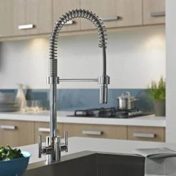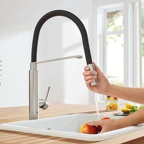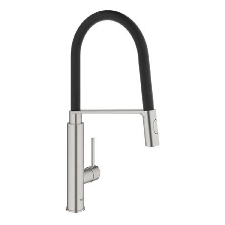 The Concetto kitchen sink mixer is a stylish tap with a high swivel spout and features GROHE SilkMove technology for smooth handling of water flow and temperature. The professional spray features two spray options – a normal spray and a powerful jet spray, ideal for cleaning veg, filling pots and even switching across a double sink. With the GROHE EasyDock M system, the spray head is easily guided back into place by a powerful magnet when you’re done. This stylish tap is manufactured using high grade materials and comes in a matt SuperSteel finish. All Grohe kitchen taps come with a 5 year guarantee.