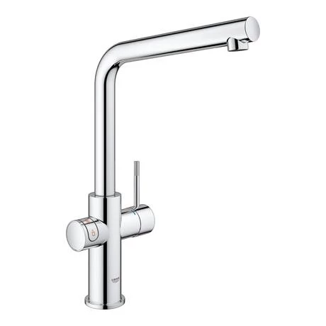The GROHE RED Duo kitchen mixer delivers water heated to 99° instantly, perfect for a quick cup of tea, blanching vegetables or sterilising baby’s bottles. This boiling water tap features an energy-efficient titanium M-size boiler that sits under the sink freeing up precious space on the work surface. The boiler provides up to 3 litres of kettle hot water at once while the in-built child lock and smart cool touch technology ensures safety for all ages. The tap features a GROHE SilkMove cartridge for smooth and effortless lever operation even after years of use and comes finished with GROHE StarLight chrome coating that is scratch resistant and easy to clean.