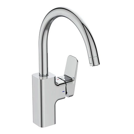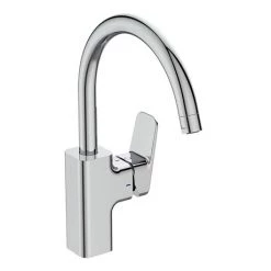 A redesigned classic, the Ideal Standard Ceraplan Single Lever High Tubular Spout Kitchen Mixer is slimmer, simpler, and smoother than ever. This updated version helps you face the challenges of modern living, achieving a beautiful balance of style and technology. It comes equipped with a FirmaFHigh ceramic cartridge with a lifespan of 500,000 cycles and features a 360° swivel spout.