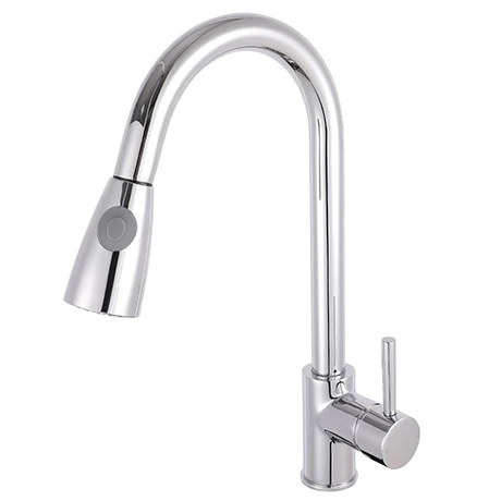 A stylish modern side action pull out rinser spray kitchen tap, features a elegant cylinder spout with a quality flexible pull out button controlled rinser spray. The side Mounted single lever handle controls temperature and water pressure. Manufactured from high grade brass with a polished chrome finish. Comes with a 5 year guarantee.