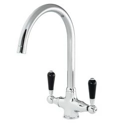 The Brooklyn traditional kitchen mixer is designed and manufactured by Reginox. The Reginox brand is renowned for its amazing products that are created using the latest methods and to the highest standards. The tap has a chrome body with dual lever function, the lever taps are in a black finish which makes the Brooklyn blend into classic ceramic sinks or in a kitchen with a traditional theme.