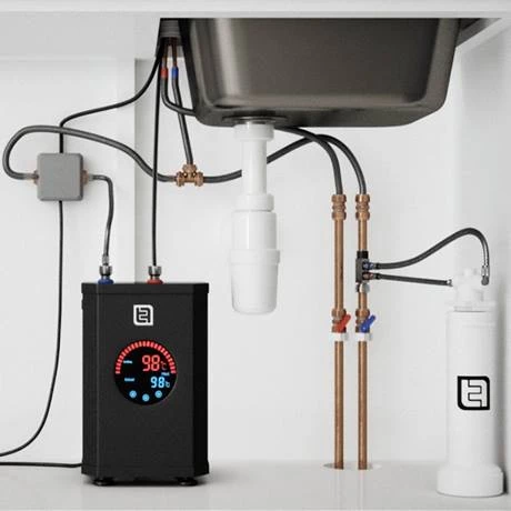 The Xara Brushed Steel 4 in 1 Instant Hot Water Tap saves you time, energy and worktop space. Enjoy delicious, cold, filtered drinking water as standard, plus domestic hot water for washing and steaming hot water to make the perfect cupper, all at the touch of the ultra safe digital touch control. Includes tap, tank, K2H2O filter, connection tube, and flexible braided hoses.