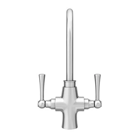 The Trafalgar is a eye-catching elegant mixer tap that perfectly compliments any kitchen. It features a swivel spout; perfect for 1.5 kitchen bowl sinks, a classic brushed nickel finish and a stylish dual lever design. This traditional kitchen tap comes complete with fittings and it needs between 0.3 – 3 Bar pressure to operate properly.Â