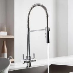 The modern styling and natural character of this Venice kitchen mixer tap will add a touch of sophistication to the kitchen. The tap features a pull out spray on a flexible hose, putting you in full control of the water’s direction, as well as a swivel spout that’s handy for cleaning bulkier items such as saucepans. Its single lever handle softly turns to control the desired water flow while the stainless steel construction of the tap ensures a long life and durable product.